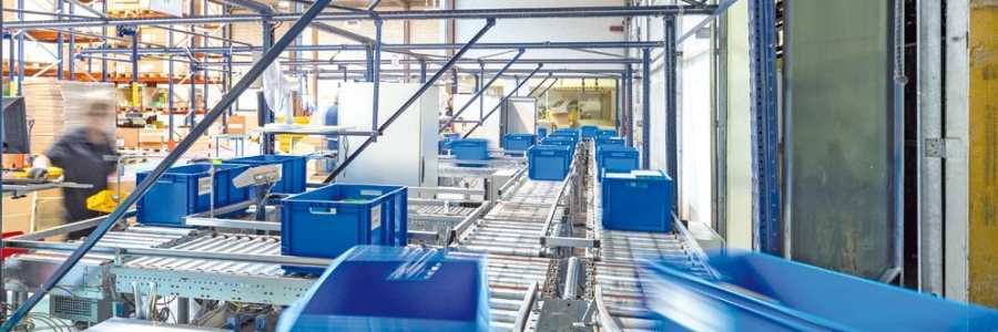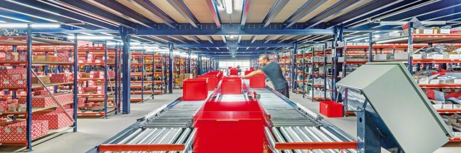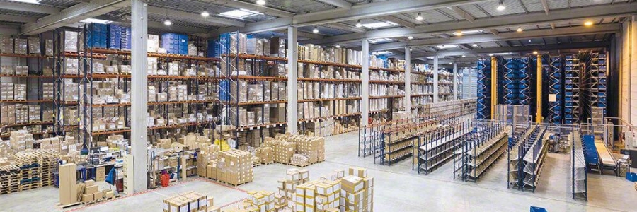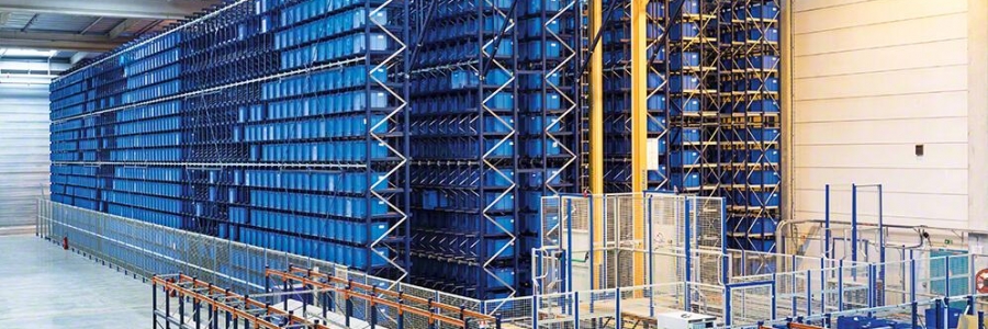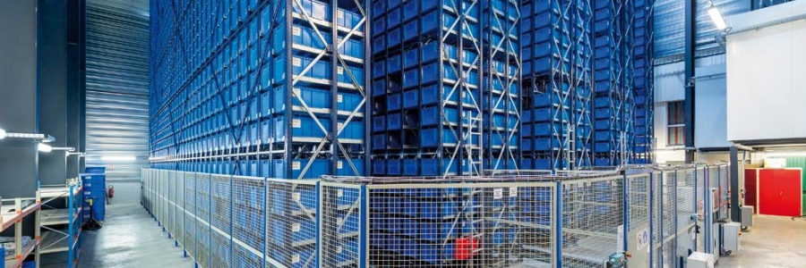 Un magasin automatique Miniload, ou transstockeur pour bacs, a été installé. Il est équipé de quatre allées avec des rayonnages à double profondeur, ce qui permet de stocker au total 15 872 eurocaisses en plastique de dimensions 600 x 400 x 320 mm La hauteur des rayonnages est de 12,3 m et le poids maximum admissible par caisse est de 50 kg.