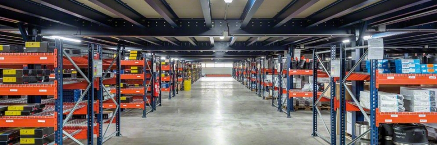 L’entrepôt composé d’un système de palettisation classique est destiné aux produits plus volumineux et aux références soumises à des rotations importantes (de type A) qui sont placées sur des palettes. Les rayonnages sont équipés de deux niveaux inférieurs, pour effectuer le picking direct des palettes, tandis que les éléments en réserve sont placés sur les niveaux supérieurs.