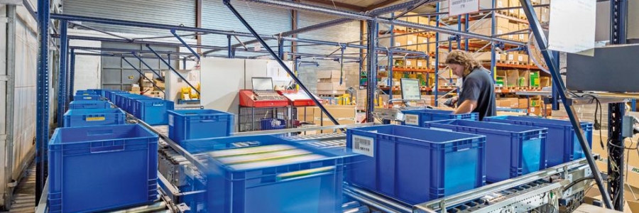 Chaque poste a une capacité de trois caisses en attente, en plus de la caisse en cours d’utilisation. Le système est géré par un opérateur capable de préparer six commandes simultanément. Pour ce faire, il utilise un ordinateur connecté au système de gestion d’entrepôt Easy WMS édité par Mecalux. Il dispose également de différents dispositifs d’aide au picking, comme par exemple, les « put–to-light » installés sur les conteneurs de chaque commande qui indiquent à l’opérateur à quelle commande correspond chaque référence.